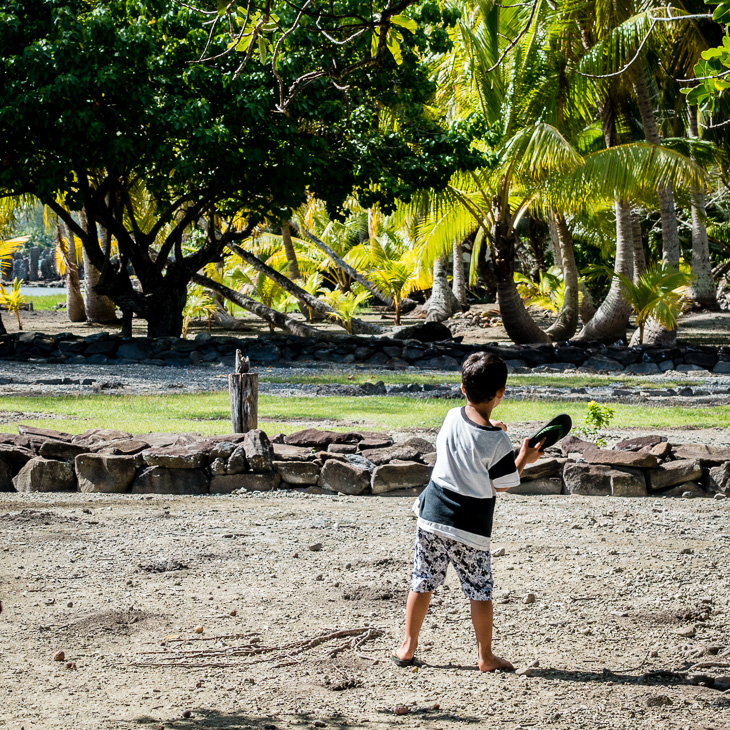 Paul, anthropologist and long-time local resident, is well-qualified to lead our four-hour walk-about tour called Sacred Sites and Cultural Walk. Rahui, Paul’s five-year-old son, joins us for part of the tour (the part where we get ice cream cones), but he seems happiest when he’s on the beach, using one of his flip-flops to bat pebbles.