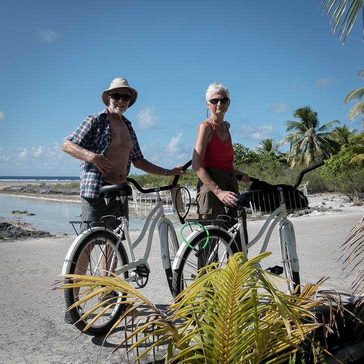 If we had an atoll, we would name it “No Problem” (that’s No Problem Atoll, kids). An atoll is a low island, and Rangiroa (Rangi, as it’s known to its friends) is a big one – the world’s third largest. The snorkel-then-cycle routine worked well in Bora Bora, so we used that same  combination here on Rangi.