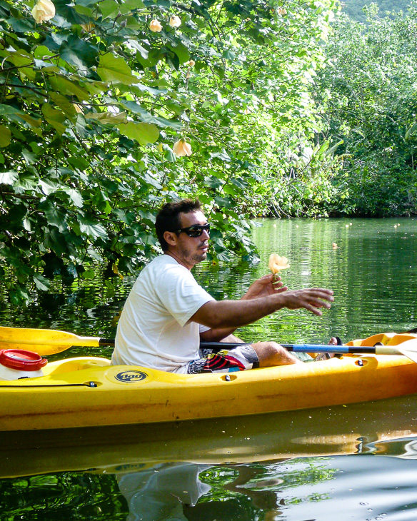 The Fa’aroa is Polynesia’s only navigable river, and it can only be explored by water, so of course we had to paddle there. Our Cruise Director and five fellow passengers joined us for this back-to-nature kayak tour provided by Lagon Aventures.