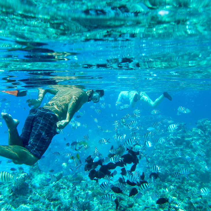Rangiroa is a natural, open-water aquarium. Divers come for the intimidating and world-renowned drift dives, but snorkelers like us head to a safer spot called Motu Nui Nui. Sharks are the main attraction, and we saw lots, but they were the friendly varieties. Eels, colourful fish, and coral were also observed.