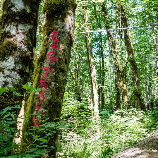 The Log Train is a lightly-used, anything-goes sort of trail. Dog-walkers, horse-riders, cyclists, and quad-drivers (in spite of the “non-motorized vehicles only” sign) share the trail. Be nice to the locals, even the quad-drivers, because you will need to ask them for directions.