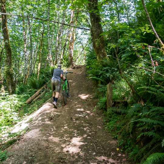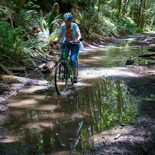 Signage is sparse, and you could end up in Coombs if you take a wrong turn. A hybrid bicycle will survive this trail, but a mountain bike would be better. Either way, take a wrench for tightening bolts.
