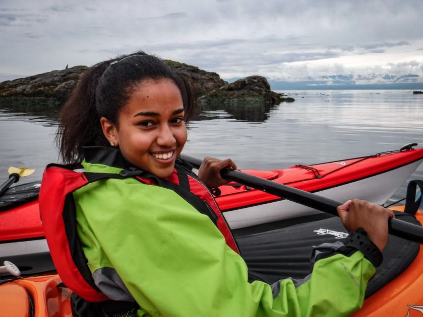 “I love seals,” sighed granddaughter Lizzie, so for her fifteenth birthday we signed up for the Discovery Island Kayak Tour, with seal-sightings guaranteed. A family of harbour seals was hanging out by the fish cleaning station at Oak Bay Marina, where our tour began, so the birthday wish to see a seal was easily granted.