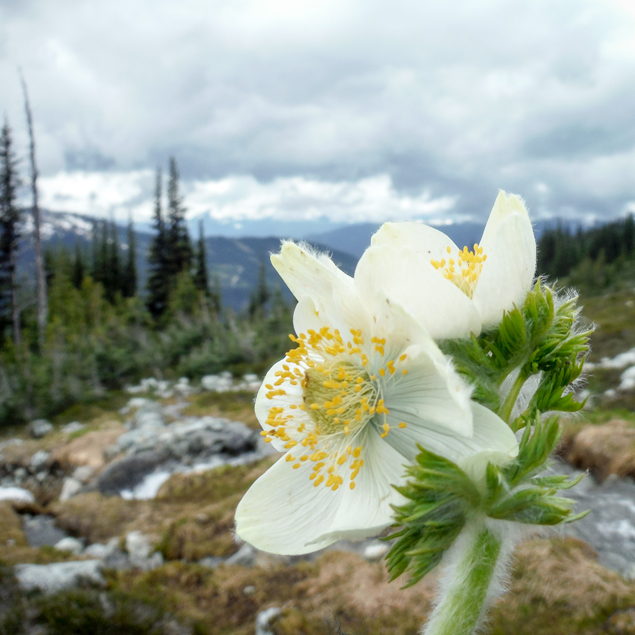 Wildflowers are beginning to bloom on our last day, and three alpine trails are now open for hiking: Lakeside Loop, Overlord, and Tree Line. Flower meadows and alpine lakes with glacier run-offs are admired, and snowballs are thrown.