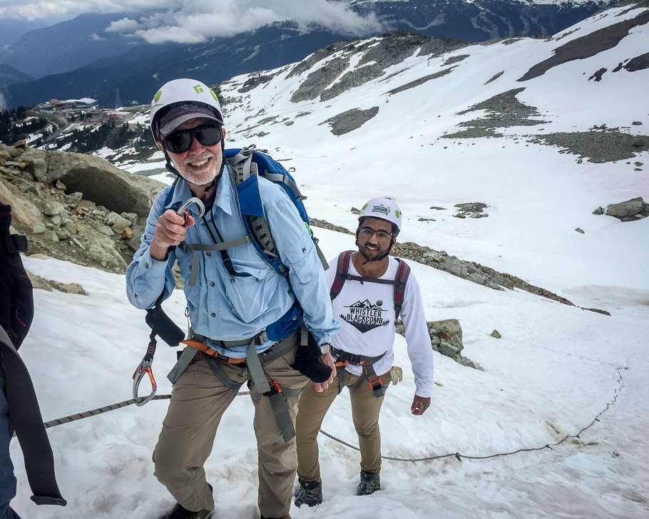 What is Via Ferrata? Via Ferrata (or “Iron Way”) is a unique and exciting way for ordinary people to climb Whistler Mountain, using an engineered vertical pathway with metal rung ladders and fixed steel cables for safety. What awaits you at the top? Stunning mountain views and a huge sense of achievement. Angie and Robin say Via Ferrata is their favourite and most thrilling tour.