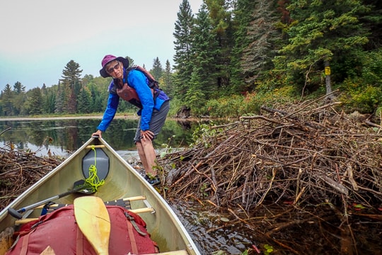 Which is harder: one portage of 2.3 km (day two) or five portages totalling 1.7 km (day seven, from Big Trout to Otterslide Lake)? We have plenty of time to contemplate this interesting question, as each portage requires two passes. We are getting stronger, but not strong enough for the ideal single-pass method (maybe if we hadn’t brought the lawn chairs?). Time-wise, the two are about equal, but day seven involves even more lifting – over at least six beaver dams (we lost count).