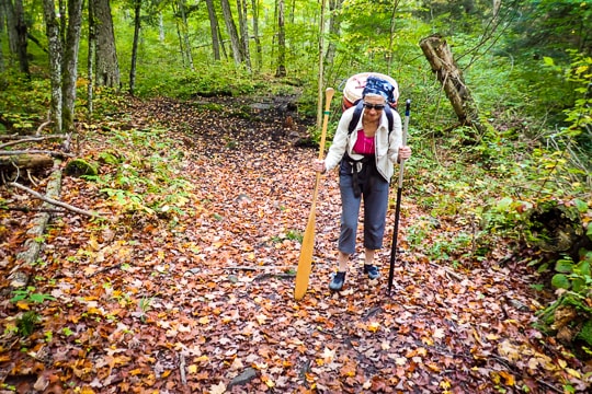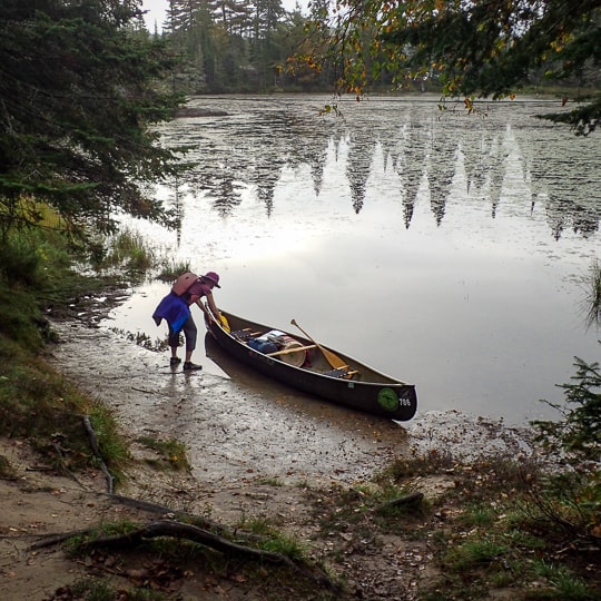 Algonquin gets a lot of visitors. Even in September, one of the quieter months, traffic jams can occur at portages on the popular routes. At our access point and the first portage, we see lots of boats: large groups of outdoor education students, novice paddlers banging paddles against the sides of their canoes, and old hands to whom Algonquin tripping is a near-religious experience.