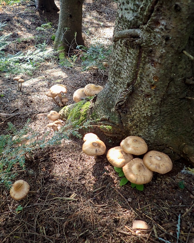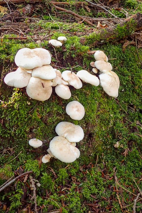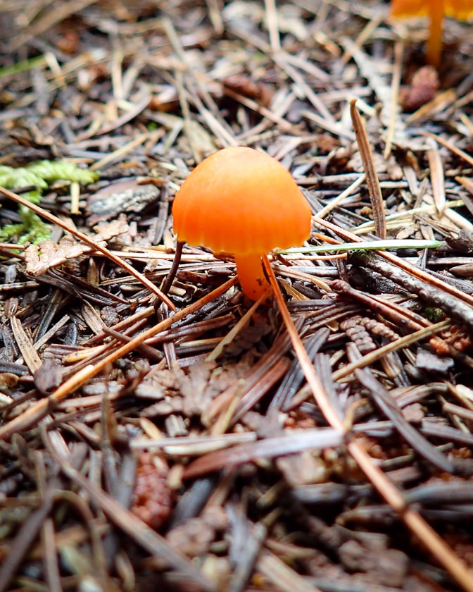 By day three a heat wave is developing, so we need to eat the remaining perishable food asap. Breakfast sausages for breakfast, hot dogs for lunch, dinner sausages for dinner, and it’s done. It’s a rest day, so we have time to explore our enormous campsite, photograph mushrooms, and watch loons.