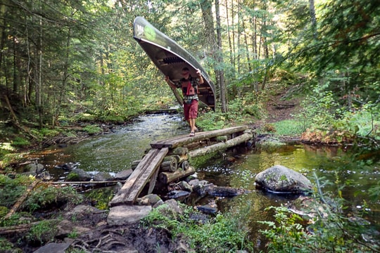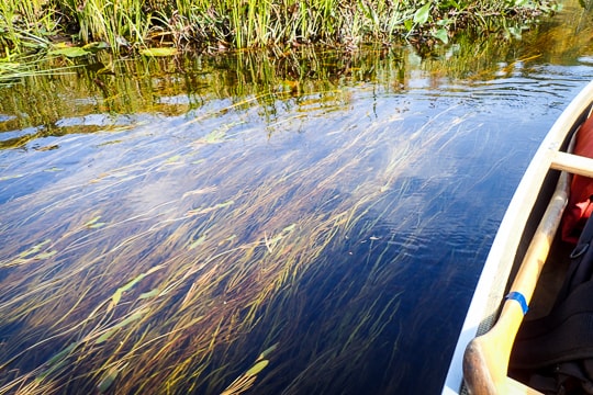 Portage trails are manicured. Put-ins and take-outs are beaches rather than gooey mud and sharp rocks. Day-trippers from a fancy lodge. A barking dog. A picnic table in the campsite. Our cell phone has (weak) reception. Signs that we are on the home stretch. It is a sad feeling, actually, because into our second week we find a comfortable rhythm and feel no need to leave.