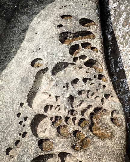 The community sharing continues at the privately-owned peninsula Edith Point. Respectful walkers are welcome on the trails, according to several locals we meet, so we leave our bikes at the end of Edith Road and walk a well-maintained six-kilometre loop to the Point. This is the most scenic walk on Mayne Island in our opinion. On the coastal section, Cathy is sure she sees polar bears swimming towards us. Turns out it’s four Steller sea lions, and they are huge. No wonder the Steller is considered the king of sea lions.