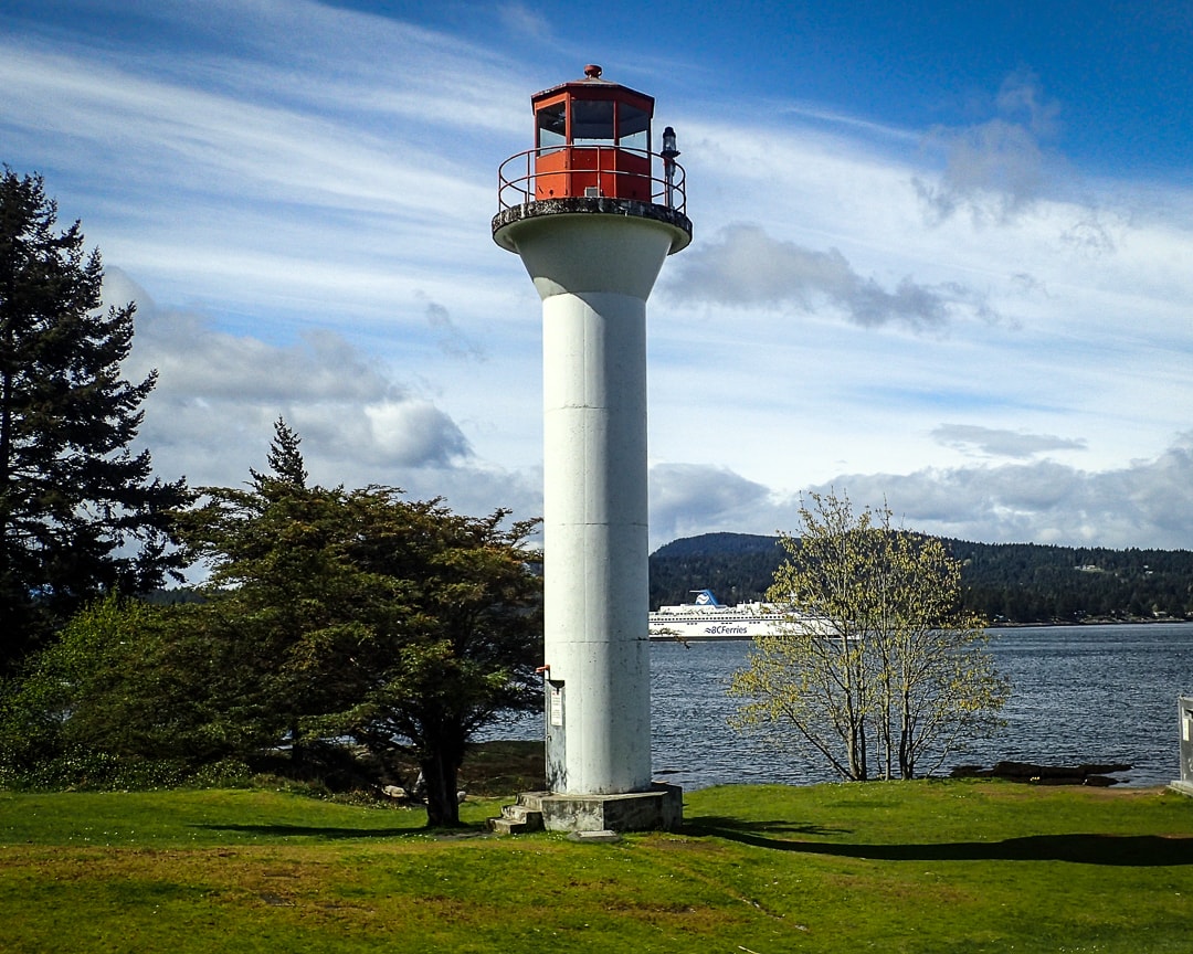 The North Island Loop’s first stop is the historic Georgina Point Lighthouse, built in 1885 to warn ships of the reefs and choppy waters of Active Pass. The lighthouse is de-activated, but the headland is a popular spot for picnics and for watching boats as they transit Active Pass.