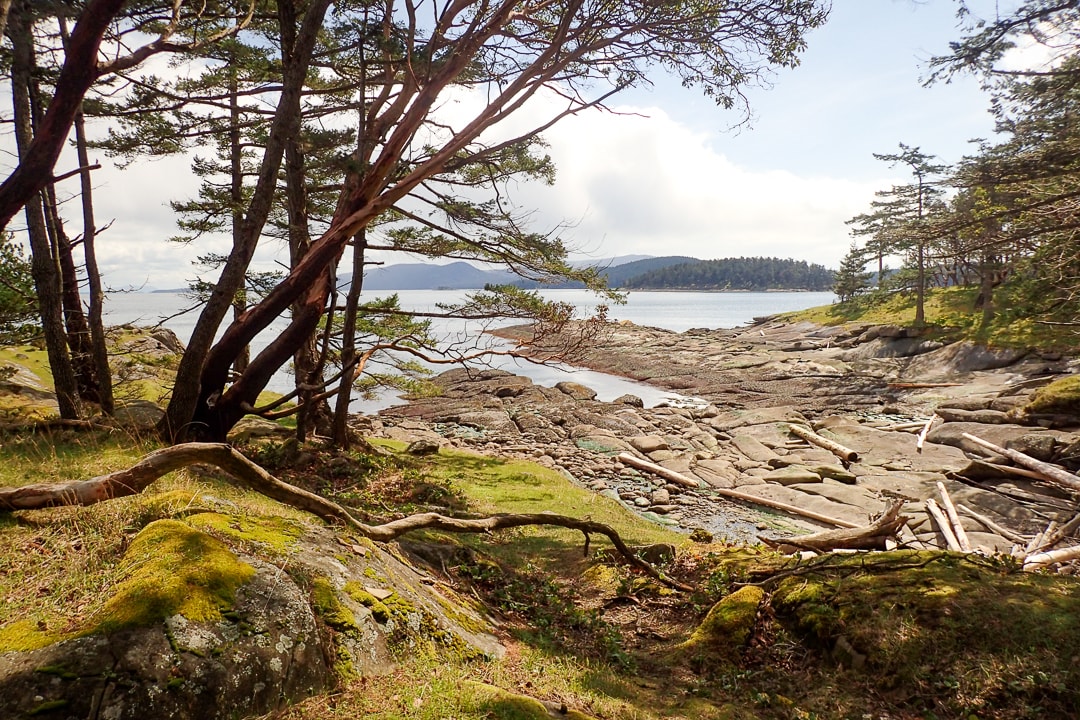The South Island Loop (13 km) is “a masochist’s delight” according to John Crouch’s Cycling the Islands, so we tackle those hilly roads first. Our bike batteries make the lumpy roads doable, but pedal-assist does not eliminate the need to huff-and-puff on Gallagher Bay Road, Marine Drive, and Mariners Way.