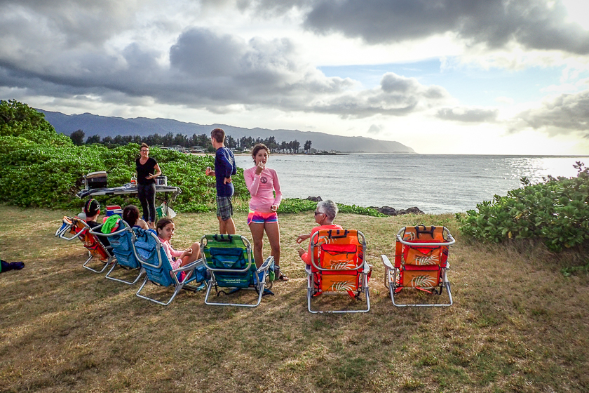 Other family members have trip goals, too, and we believe that all goals are achieved. Angie creates a well-thought-out list of must-sees, including Pearl Harbour, a luau, a pineapple plantation, and Waimea Falls. Alec wants a strenuous road-bike ride, and he finds it on Mount Tantalus. Nathan needs to practice his cross-country running; while on Oahu he earns three course records on Strava (a social network for athletes). Scarlett and Robin want to try scuba diving, which they do, seeing a whole new underwater world, silent except for the dolphins that they can hear. Cathy wants to sip Kona coffee while catching up with the young people, listening to their thoughts about life.