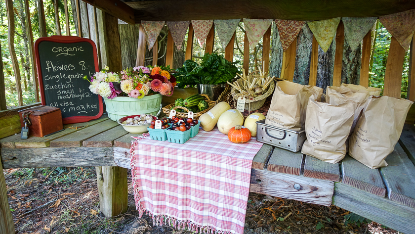 Congestion ahead! It’s the Tuesday Farmers Market in Ganges, Salt Spring’s main village. Doug wades into the crowds who have come in search of fresh, locally-grown veggies, berries, fruits, and flowers. He emerges, arms full of apple desserts.