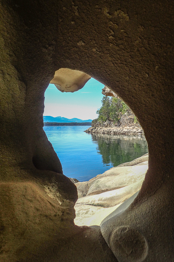 A tafone is a geological formation of sculpted rock, a tapovan is a forest of spiritual practice, and an angry cormorant growls like an oinking pig. So much to learn on Galiano Island! Long and skinny, Galiano is rather hilly, and destinations are spread out — perfect for exploring by e-bike.