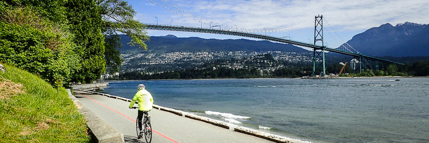 “It’s a bicycle highway,” exclaims a pedestrian, waiting to cross the steady stream of cyclists cruising Vancouver’s Kitsilano Beach on a sunny Sunday. At some point in the last forty-seven years, Vancouver became a world-class cycling city. We admit it: we have failed to pay attention to Vancouver’s evolution since we moved away from the city in 1972. We redress our error by dedicating one week to the exploration of Vancouver’s cycling trails.