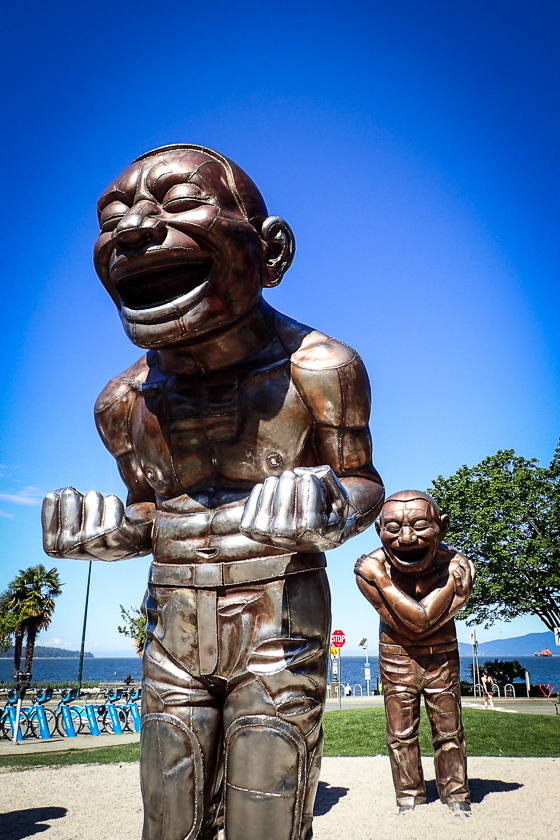 We are flabbergasted by the beauty of this 24-km uninterrupted waterfront pathway loop around Stanley Park and False Creek. Stunning views, sandy beaches, and urban forest (nearly half a million trees) are non-stop. The path is divided for safety: one side for pedestrians, the other for cyclists and rollerbladers. Bicycles travel one-way (counterclockwise) around the Stanley Park Seawall portion (9 km).