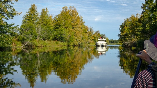 Power boaters feel sorry for us because we travel by canoe and sleep in a tent. Surely we aspire to a cabin cruiser or at least a rented houseboat? In fact, a canoe is our boat of choice. We like being self-propelled, gliding through the lily pads where propellers can’t go. The vulnerability of canoe-tripping isn’t always pleasant, but it certainly enhances our connection to the waterway. Powerboat, houseboat, tour boat, canoe, kayak, bicycle, car: isn’t it great that there are so many different ways to enjoy this Canadian heritage route?