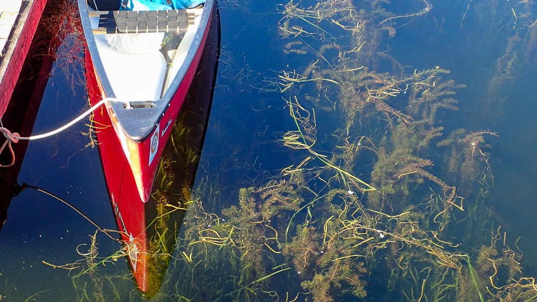 Aquatic weeds are a danger to propeller-driven boats, but weeds are a paddler’s friend, as they provide a place to rest, and escape wind and wake. The weedy zone is the no-wake canoe-cruising zone.