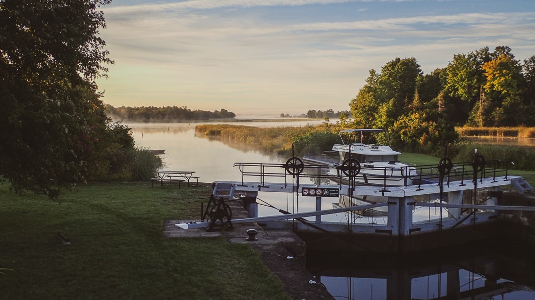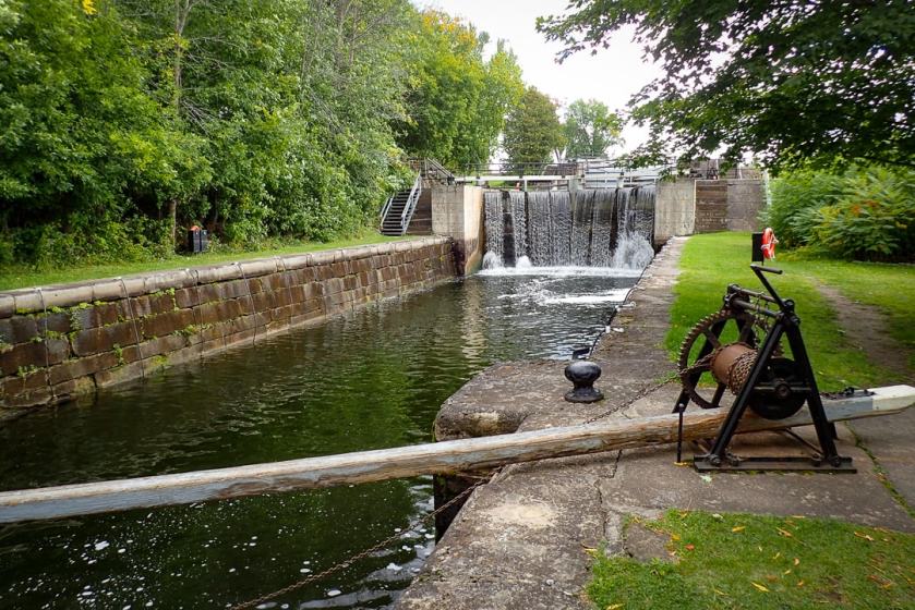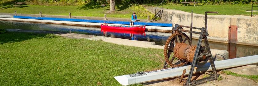 Portage all the locks. Locking through is interesting, easy, and fun, but purists are free to carry their canoe and gear across the locks. Once or twice we choose to portage, because we want an early start (lockstation hours are greatly reduced after Labour Day).