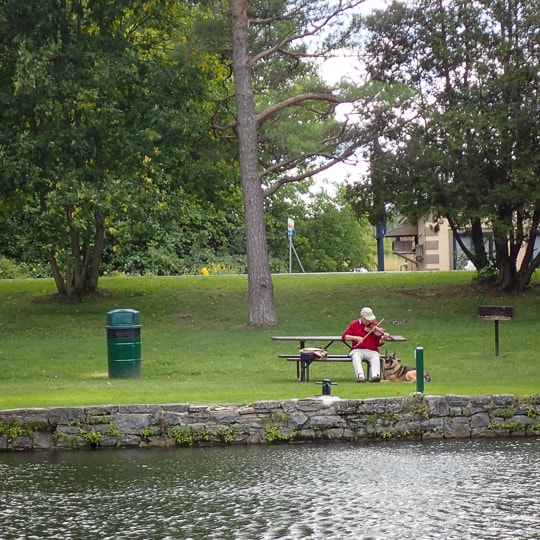 The serenades at Jones Falls have ended. The accordion-playing lockmaster passed away. The current lock master is very pleasant, but he doesn’t play or sing This Land is Your Land.