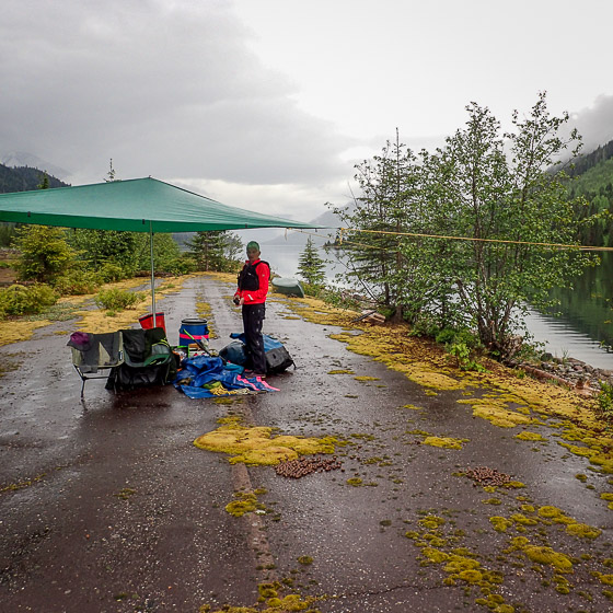June is a great month for moose-viewing, but this June – let’s call it Juneuary – the weather includes that dreaded combination of rain, wind, and cold temperatures that make canoe-camping a challenge. “I’d like to hone my survival skills,” says Doug, when asked his goal for this expedition. Erecting a backcountry tarp is a manly art, and Doug has plenty of opportunities to practice – sometimes three attempts per day – as the wind shifts and escalates to tarp-shredding speeds.