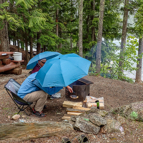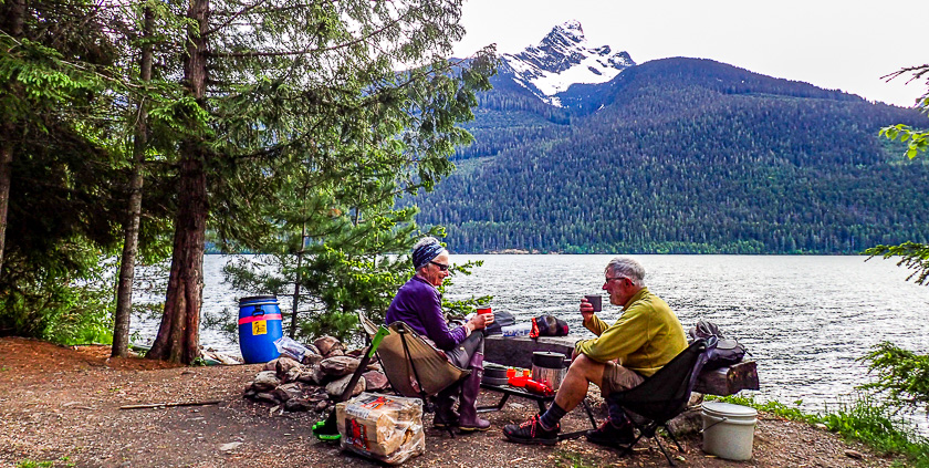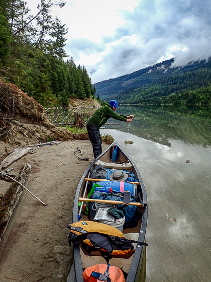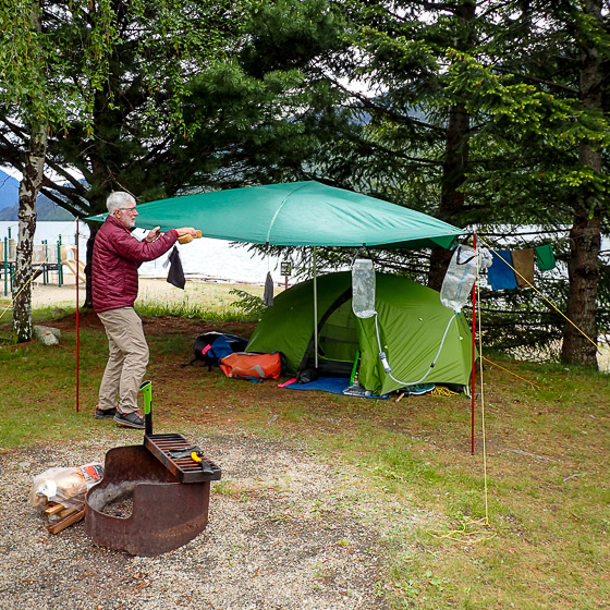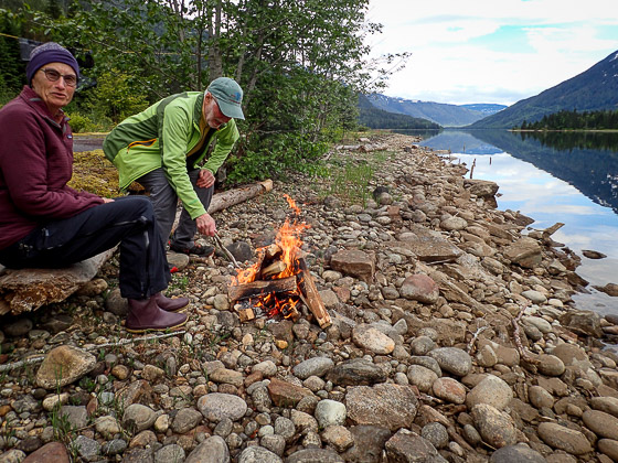 Crown Land camping is possible at the lake’s southern end, but we decide to check out the developed road-accessible public campgrounds: Carnes Creek Recreation Site, Wadey Recreation Site, and Martha Creek Provincial Park. It’s not carnival season yet. We find quiet, well-maintained campgrounds, with gracious hosts, especially the couple from Carnes Creek, who stop at Wadey to check that we have made it safely after a day of high winds.