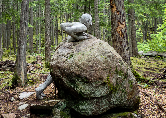 Kaslo is one of British Columbia’s prettiest villages, according to the tourist literature, and we agree: this is a cute, quaint, tiny lakeside town surrounded by Purcell Mountain peaks. Also very cute: the Koots sculptures playing hide-and-seek among the boulders along the Kaslo River Trail.
