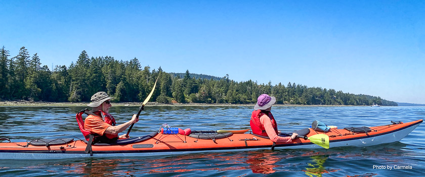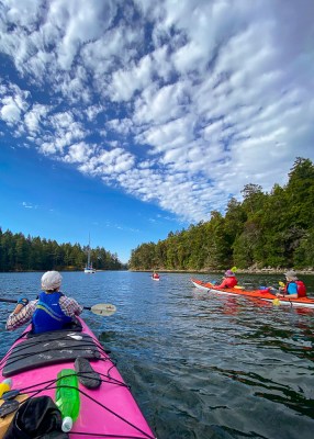 “Being a senior is no problem for us,” responds Wyatt. We have paddled to Wallace Island and Dionisio Point many times – on our own in our tandem canoe – but those trips were more than twenty years ago. “I’d like a bit of help,” admits Doug, so we contact Salt Spring Adventures, and Wyatt invites us to join the upcoming Dionisio Point Multi-Day Kayak Tour.