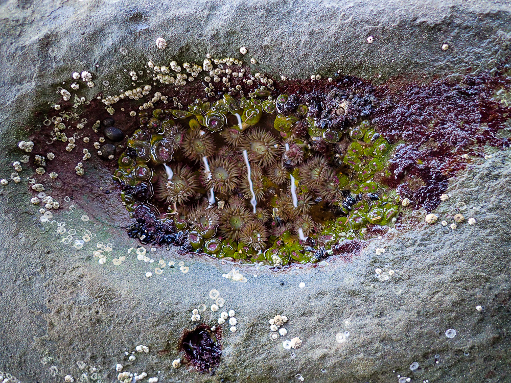 The delightful Dionisio Point is our destination and our base for two nights. Getting there involves a transit of the famously fast and furious Porlier Pass, and timing is critical. Slack water provides a short window when the water is its least treacherous, and Lukas times our arrival precisely. Even so, there are eddies to cross and chop to conquer, as the current is beginning to flow against a building easterly wind.