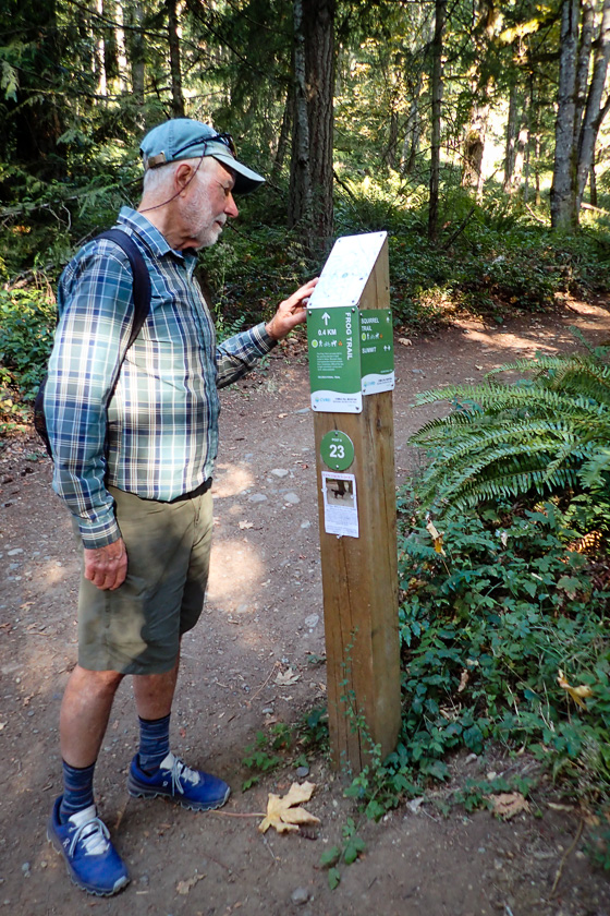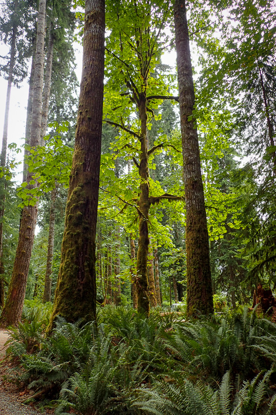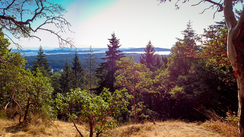 We have a rental car, and Doug wants to use it, so we drive along Youbou Road, where a hulking bull elk is casually munching grass. On the way home, we stop at the popular Cobble Hill Mountain Regional Recreation Area. The Squirrel-Frog-Turtle Trails Loop is an easy two-hour hike, with an ocean view at the summit.