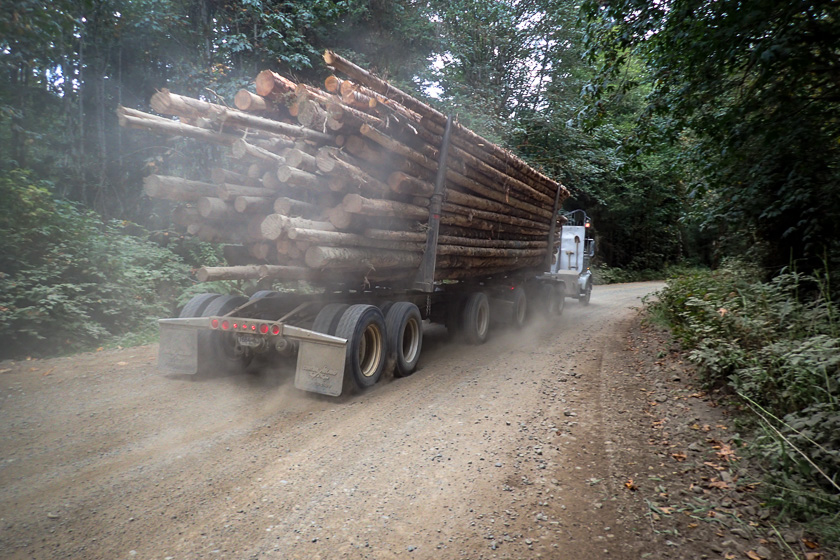 Empty logging trucks clang, loaded logging trucks rumble, reminding Cathy of a saying from her childhood: empty wagons make the most noise. With active logging in this working forest, we don’t fancy walking the logging road to Kissinger Lake, so we spend the day in our Helinox chairs on Heather’s gravel beach. We watch two mergansers, a kingfisher, a brown rabbit, and a Chocolate Lab enjoy the lake in species-appropriate ways.