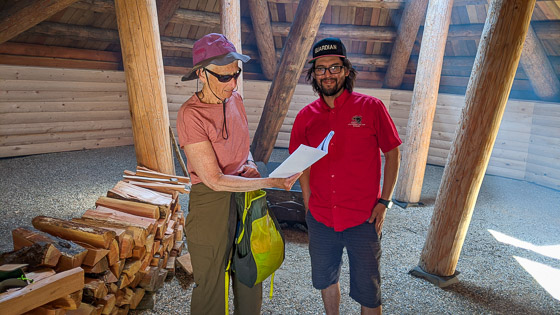 Jason, a Guardian from Little Shuswap Lake Band, welcomes us inside the fire-cooled pit house, which was just opened to the public in April. We learn about this traditional Secwepemc winter home, which is dug into the ground about a metre. A notched centre pole extends through a hole in the roof. Men climb up the pole to check for bears or enemies, down the pole to access the home. Women and children use a separate entrance, which typically faces the water and slopes from the ground into the pit below.