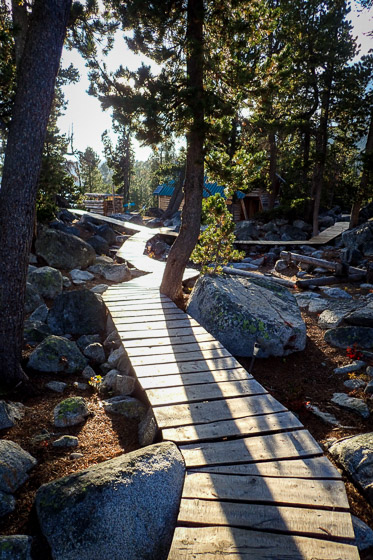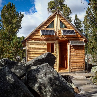 Of the three guest cabins, we are assigned Chris’s Cabin, built by Chris herself more than 25 years ago. Nestled among the rocks, Chris’s is an authentic, rustic log cabin with a wood stove and a few modern amenities: a composting toilet (requires some agility), solar lights and USB chargers, and a propane heat-on-demand shower installed just three weeks ago.