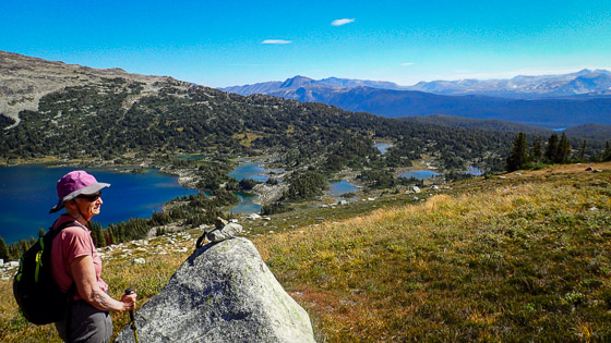 North Pass from Whitton Lake is a six-hour lollipop trail with 550m of elevation gain and 32,493 steps recorded on Doug’s Fitbit. Rated “Hard” by AllTrails, North Pass is achievable by most people. We are plenty tired, but not totally exhausted by this worthwhile hike, which features meadows, streams, and big mountain views.