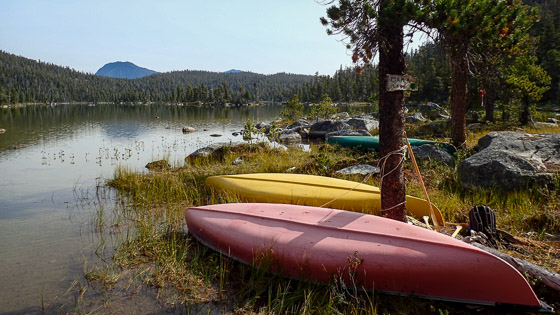 Paddlers, you won’t find kevlar or carbon fibre here. Nuk Tessli’s canoe fleet is a mix of brands at various stages of life. These alpine lakes are small, and the mountain scenery is the star of the show. Performance paddling gear would seem out of place.
