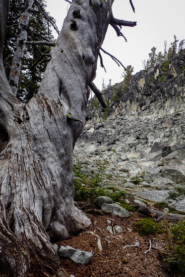 The Boundary Lake route boasts glacier views, so pretty and pleasant that we do the route twice: a sunny Saturday with nimble guide Dylan and volunteer Ofir and a cloudy, wet Tuesday with our four new friends from the Lake Front Cabin: Carl and Heather, Rick and Marilyn.