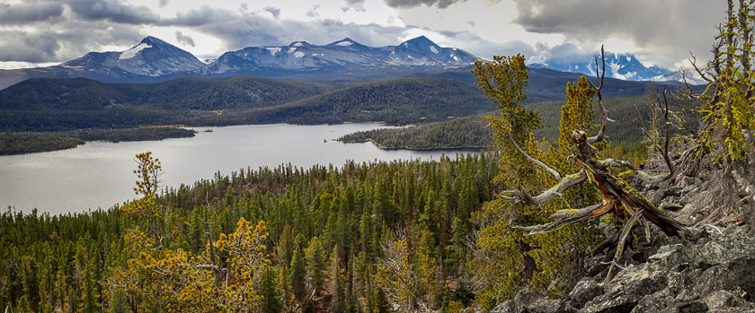 The Three Brothers Trail is a bit more challenging for us. Leaving directly from Nuk Tessli Lodge, the trail goes up to Jetha Lake, where we have a choice of three canoes. After paddling Jetha, a hike brings us to Maila Lake, where we hop into our next canoe.